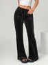 Velvet Black High Waist Yoga Flare Pants – Drawstring Lounge Trousers
